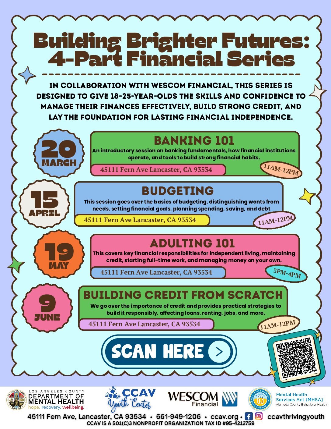 In collaboration with Wescom Financial, this series is designed to give 18-25-year-olds the skills and confidence to manage their finances effectively, build strong credit, and lay the foundation for lasting financial independence.